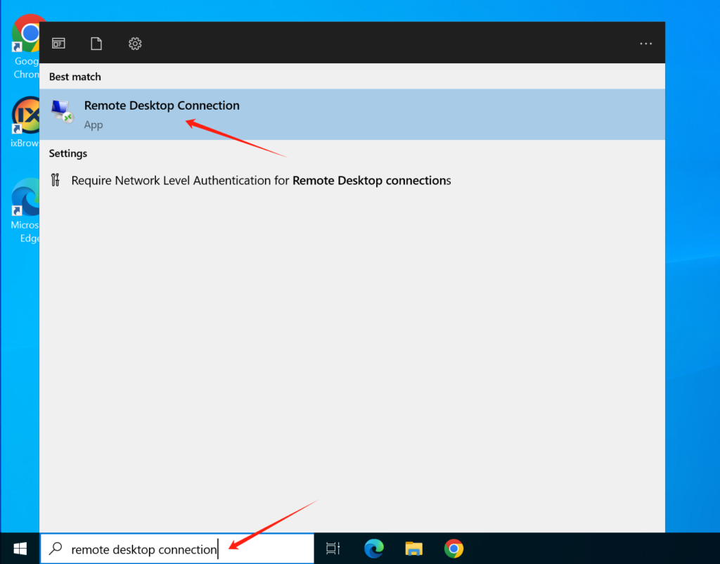 In the search box on the taskbar, type Remote Desktop Connection, and then select Remote Desktop Connection.